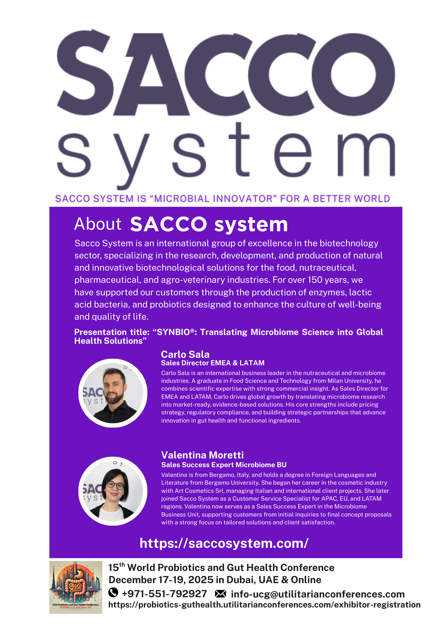Join Sacco System at the 15th World Probiotics and Gut Health Conference and experience how innovation, expertise, and collaboration can shape the future of global health.